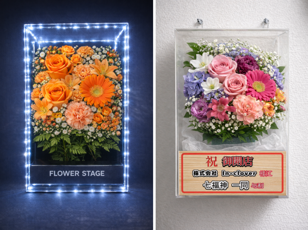 FLOWERSTAGEは“置かない祝い花”です。省スペースなのに目立つ。しかも低コストで提案できます。